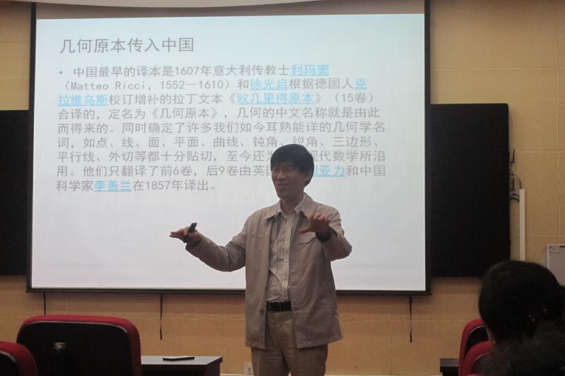 5月17日,应学院邀请,南京大学数学系秦厚荣教授来公司进行学术交流,并在9号楼C101学术报告厅作了题为 《从几何原本到素数定理》的学术报告。报告会由刘仲奎教授主持,学院部分教师及研究生50余人参加了报告会。