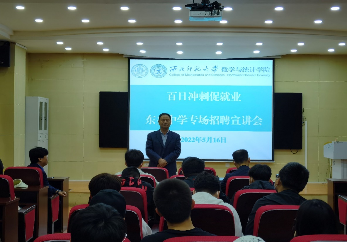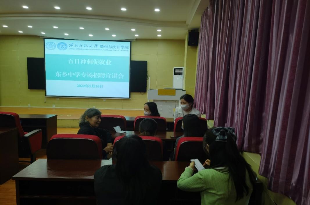 为深入贯彻落实习近平总书记关于加强高校毕业生就业工作的重要批示,贯彻落实党中央、国务院“稳就业”“保就业”决策部署和上级教育部门“确保2022年高校毕业生充分高质量就业”的安排要求,认真推进落实《w88win优德2022年毕业生就业市场开拓方案》,学院于2022年5月16日上午10:30在学院9C101会议室举行了东乡中学数学教师专场招聘会。
