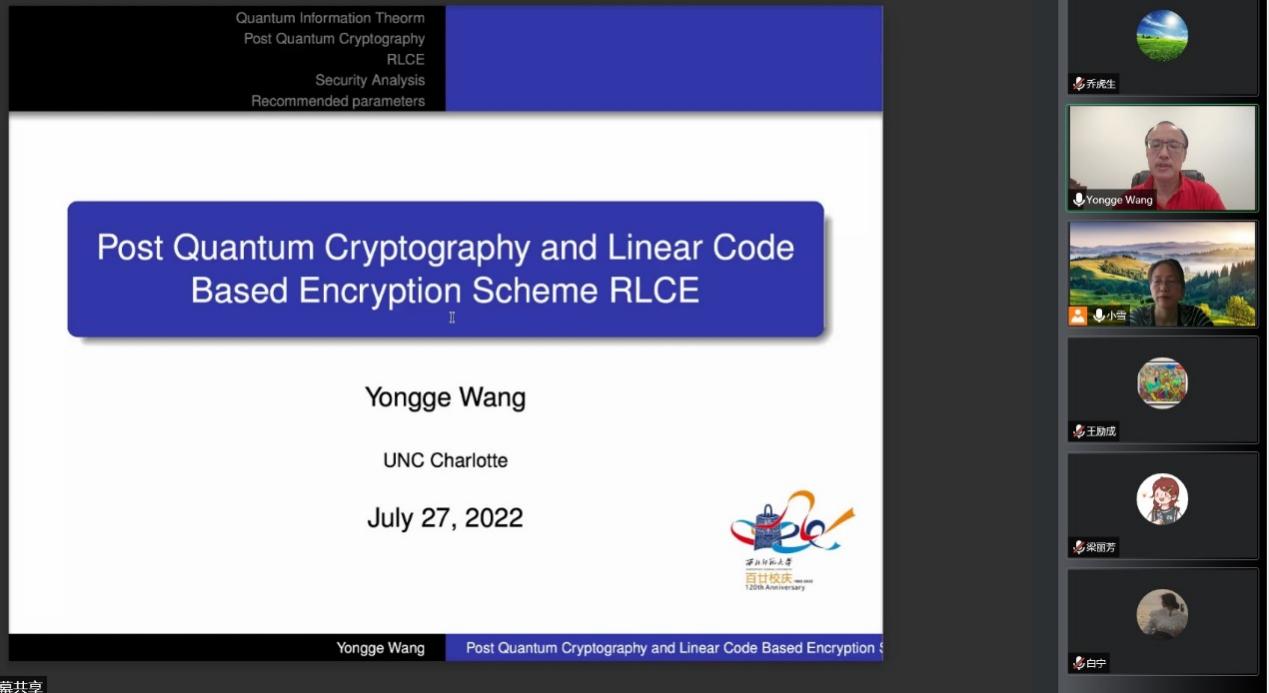 7月27日上午第一场报告,美国北卡罗来纳大学王永革教授重点介绍了抗量子计算机的密码系统概念以及新的抗量子密码系统RLCE。